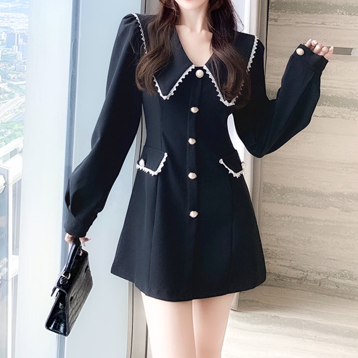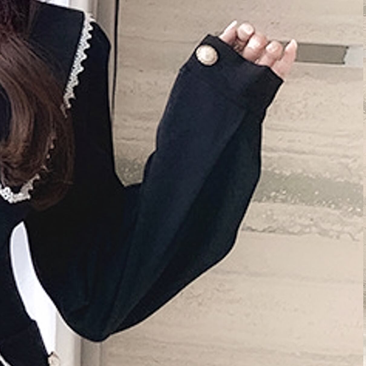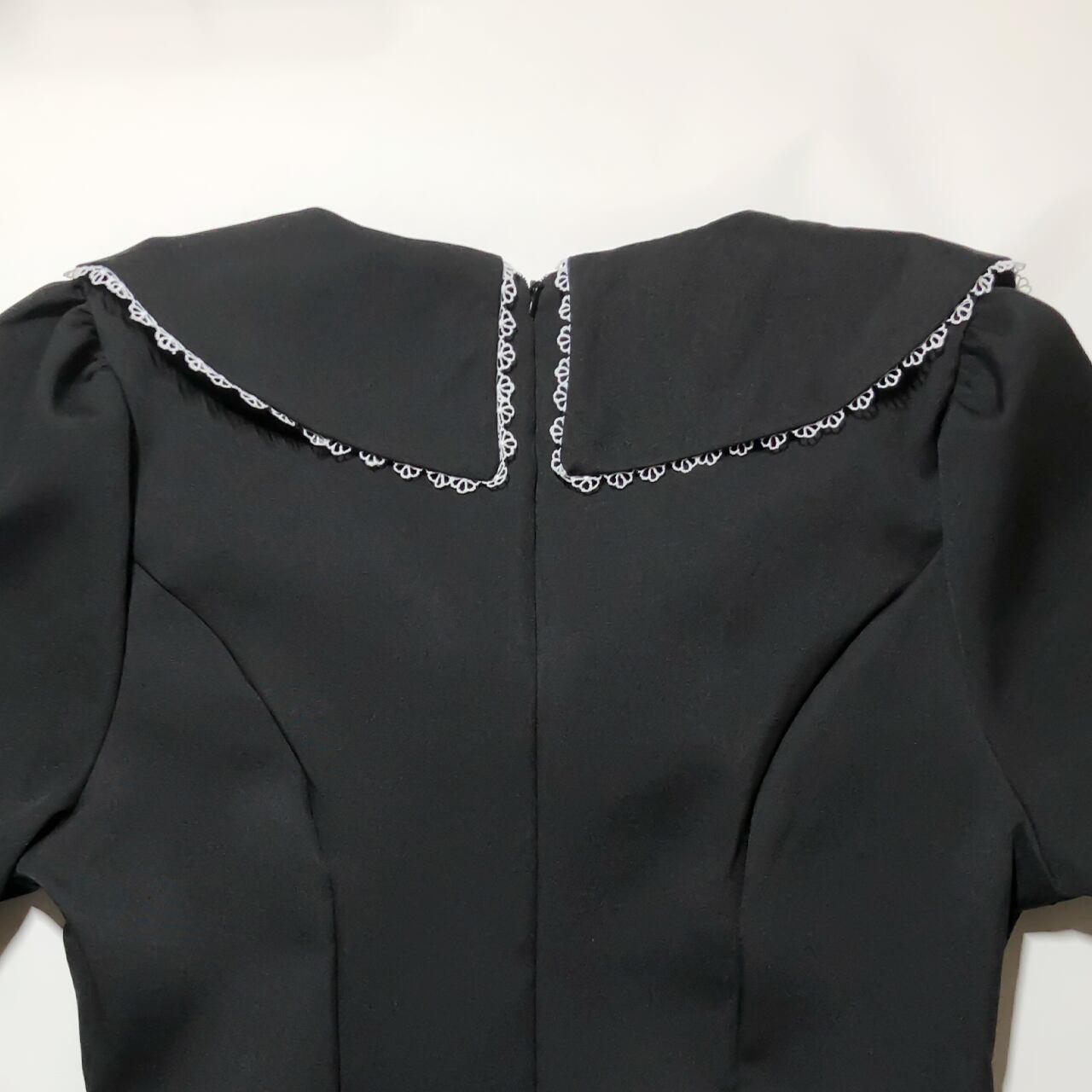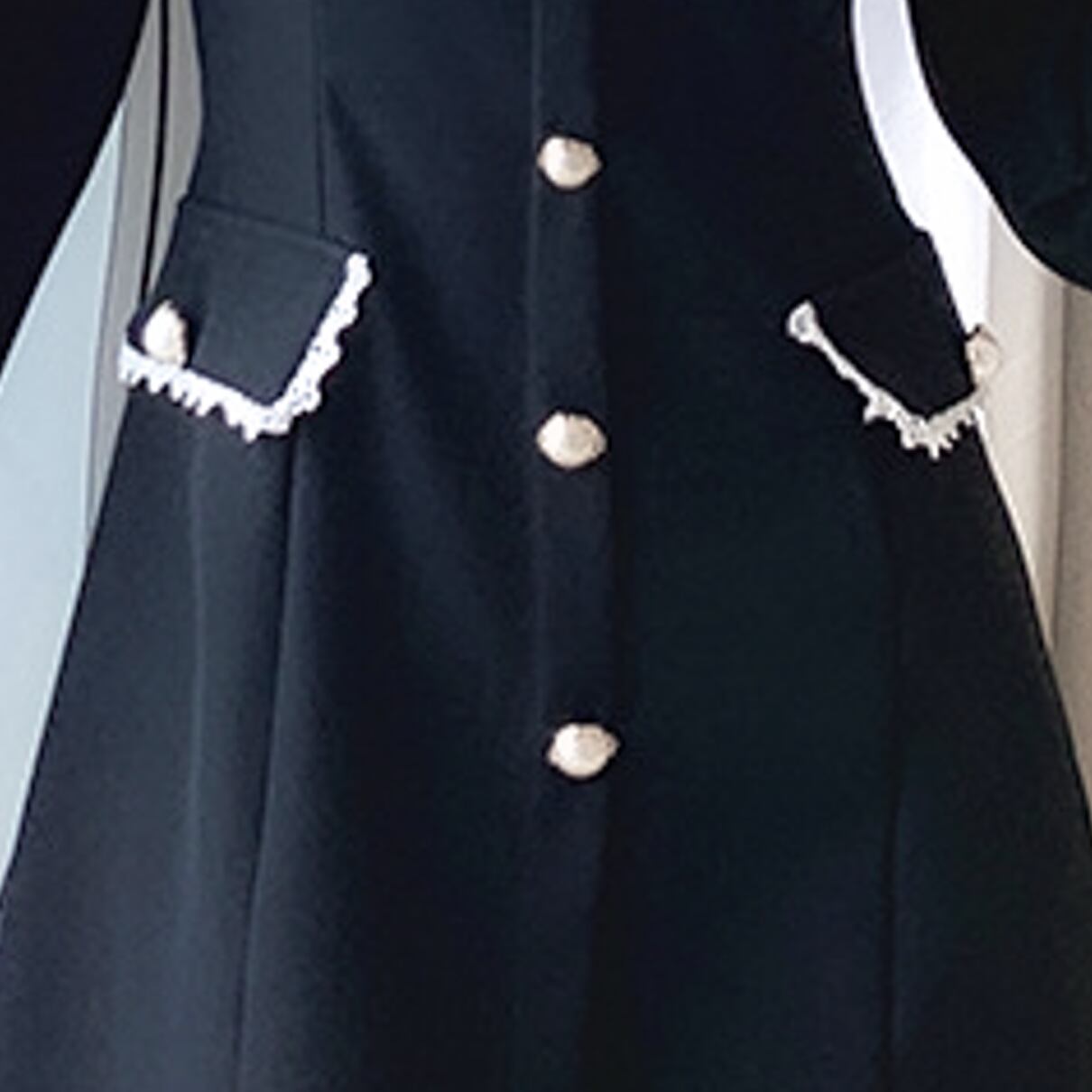 配色レース使いのクエーカーカラーに前立てパールボタンをデコレートした甘めエレガントなワンピース。ウエスト切り替えなしのスムースなシルエットを映します。 ♥ シルエット:Xライン ♥ ストレッチ:微小 ♥サイズ:M 着丈:84m 肩幅:36cm 袖丈:60cm バスト:88cm ウエスト:78cm 生産国:中国