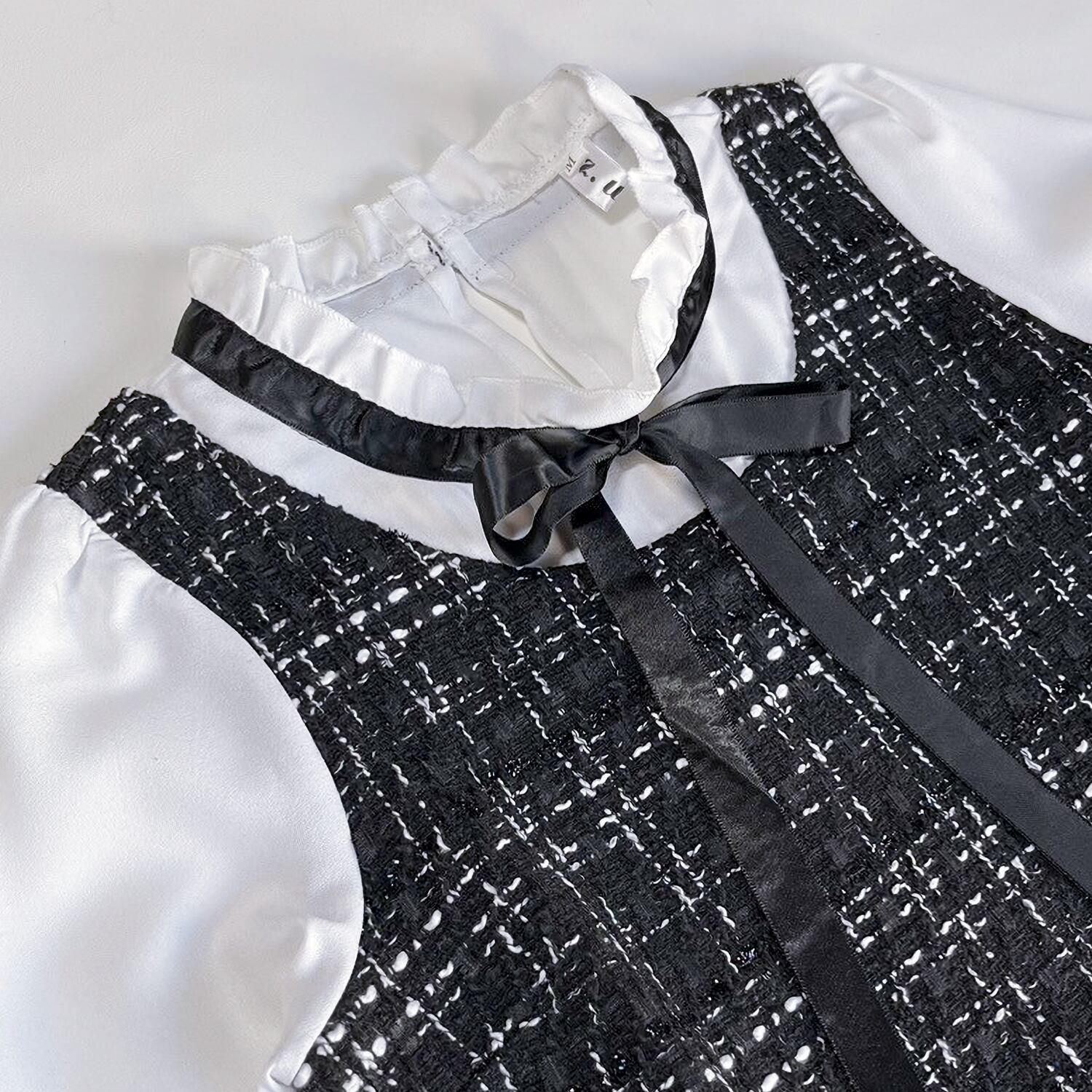 清楚で可愛い布帛にサーキュラーカフスと配色リボンをデザイン。レイヤード風な切り替えはスタイリングバランスを良く引き立たせます。 ガーリーな世界に包まれるくらいのワンピースです。 ♥シルエット:フィット・アンド・フレア ♥ストレッチ:なし ♥サイズ:M 着丈:78cm 肩幅:33cm 袖丈:61cm バスト:88cm ウエスト:74cm 生産国:中国