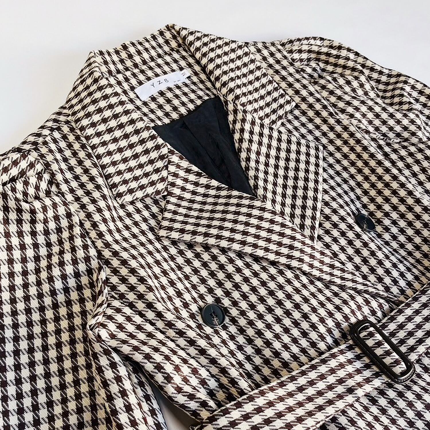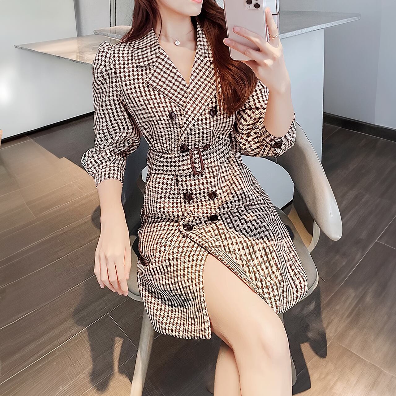 季節の訪れを感じさせるギンガムチェックを使ったWトレンチワンピース。 コンサバティブなトレンチデザインにウエストベルトでシルエットを整えて、スイートなエッセンスをプラスしてください。 ・裏地あり ・7分袖、サイドポケット ♥シルエット:Xライン ♥ストレッチ:なし ♥サイズ:M ・着丈:83cm 肩幅:34cm 袖丈:46cm バスト:93cm ウエスト:87cm 生産国:中国